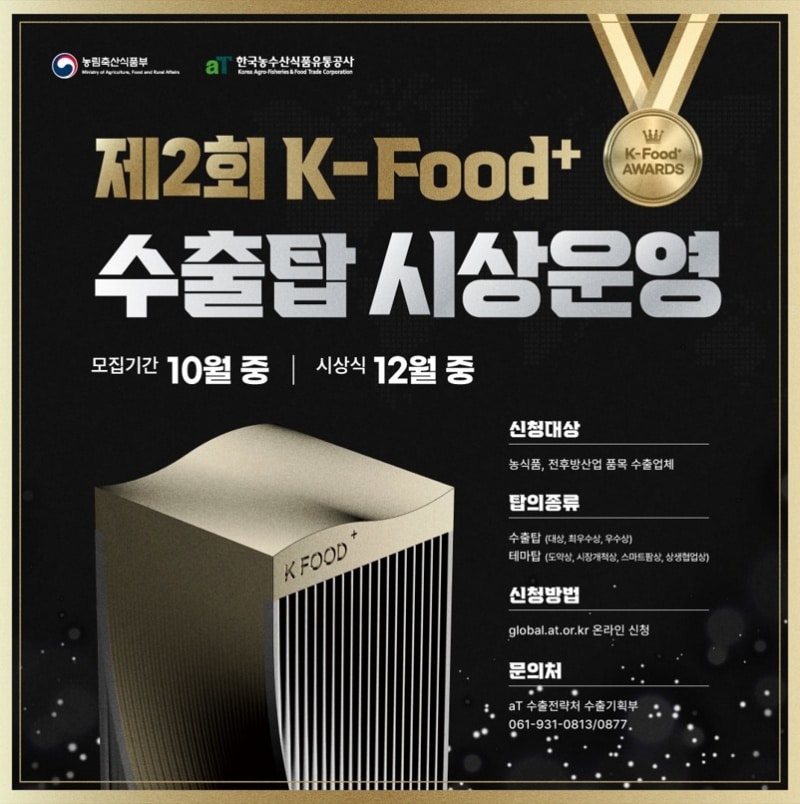 농식품부, ‘제2회 K-푸드 플러스 수출탑’ 올해 12월 시상